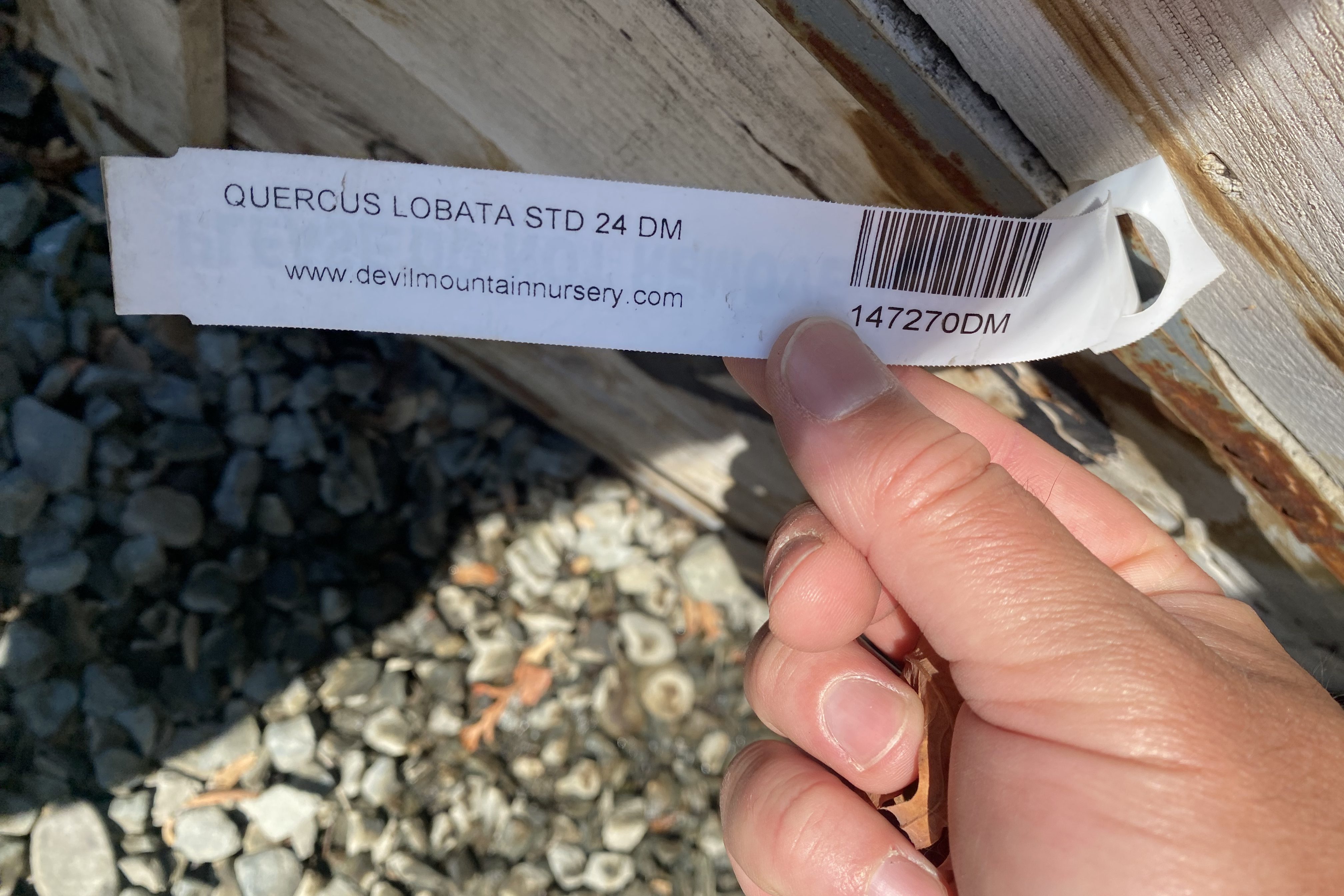 Quercus Lobata is the best choice because of its adaption to the environment. It is drought tolerant, grow quickly, reaching 20 feet in 5 years, and and up to 60 feet in 20 years. Mature specimens may attain an age of up to 600 years.
