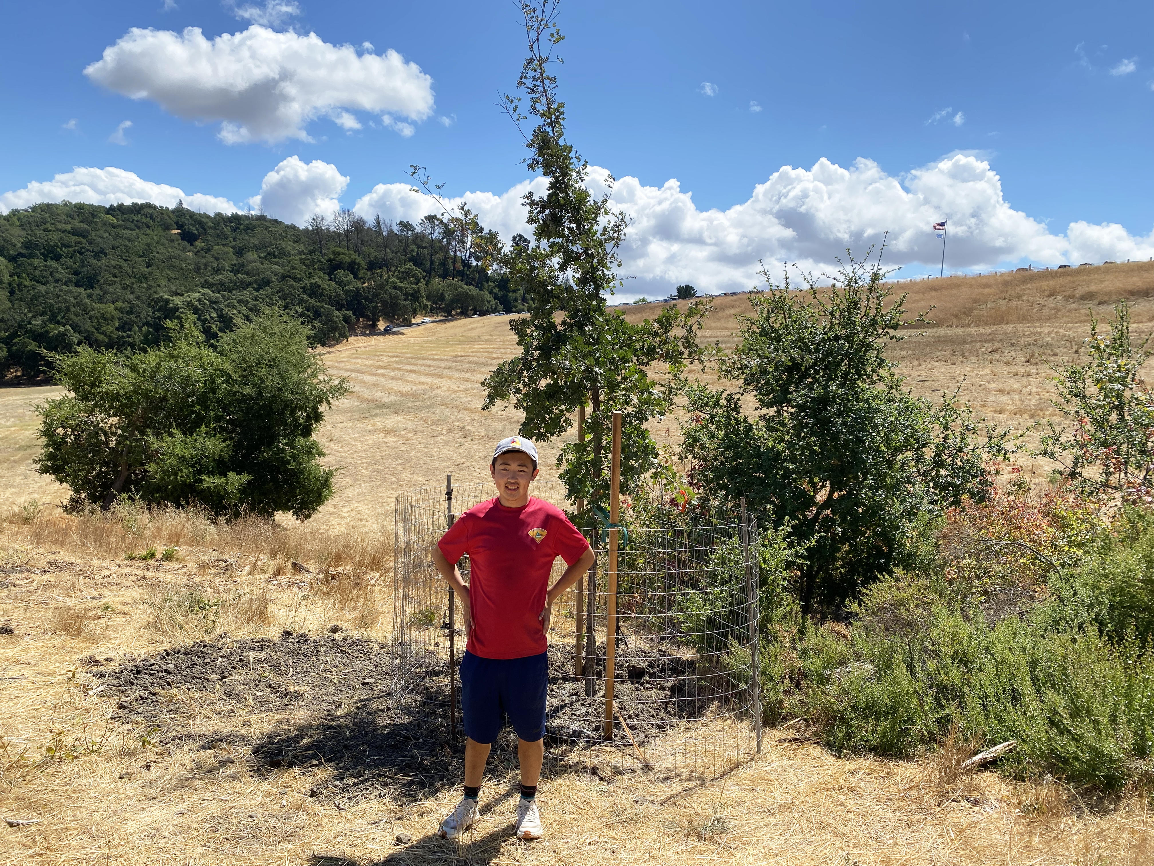 To restore the degrading ecosystem and combat the spread of pine bark beetle, I had led and completed LeafLegacy project to plant three 12-ft-tall Valley Oak trees at Lafayette Reservoir recreation area. These trees had been strategically planted alongside the trail near the entrance of the park.